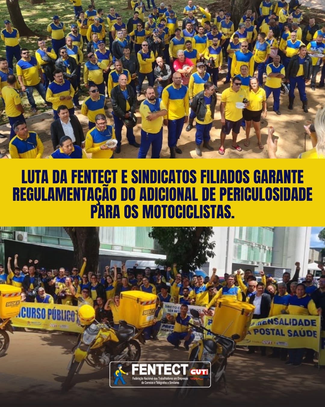 LUTA DA FENTECT E SINDICATOS FILIADOS, GARANTE REGULAMENTAÇÃO DO ADCIONAL DE PERICULOSIDADE PARA OS MOTOCICLISTAS! Após uma longa e firme luta da FENTECT e dos...