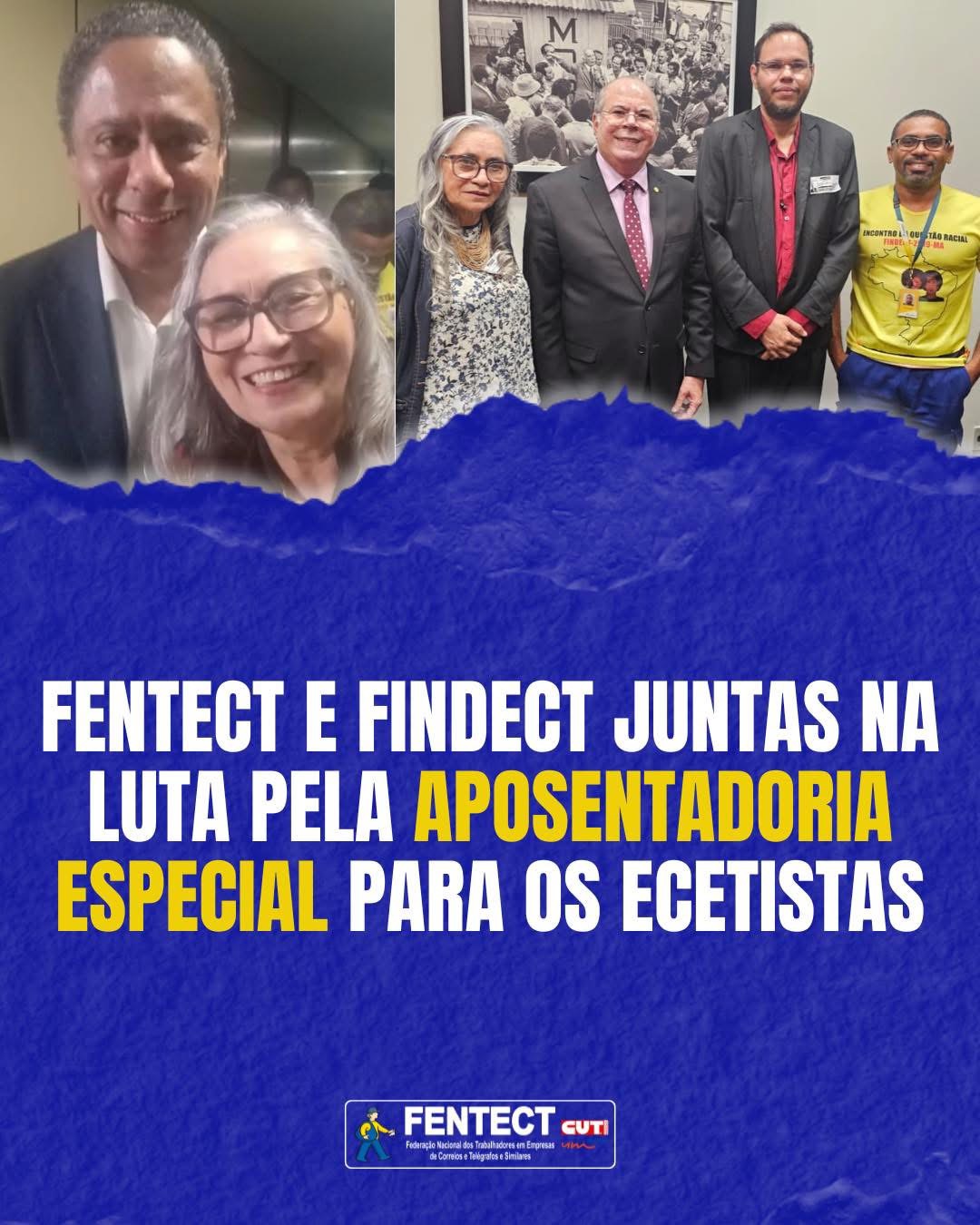 Na semana passada, a secretária de Aposentados da FENTECT, Lourdinha Félix, participou de reuniões importantes com parlamentares para fortalecer a luta pela aposentadoria especial dos carteiros OTTs e atendentes. O projeto é de autoria do deputado federal Orlando Silva (PCdoB/SP) e está atualmente na Comissão de Finanças e Tributação (CFT). Estivemos também com o relator da matéria, deputado Hildo Rocha (MDB-MA), que já manifestou seu apoio em defesa dessa proposta tão importante para a nossa categoria. Vamos juntos lutar pela aprovação da aposentadoria especial para os trabalhadores ecetistas. JUNTOS SOMOS MAIS FORTES! FENTECT NA LUTA SEMPRE! ✊🏼