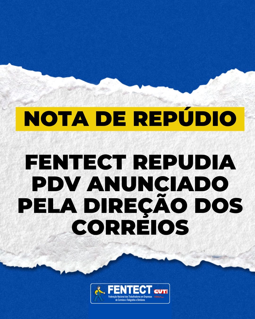 A FENTECT repudia de forma contundente o Programa de Demissão Voluntária (PDV) anunciado pela direção dos Correios. É inaceitável que, mais uma vez, a...