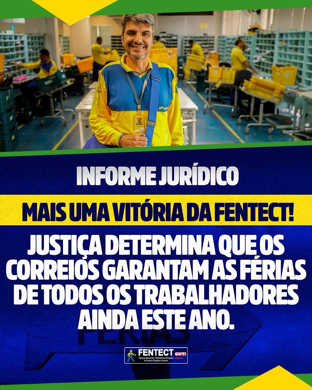 O TRABALHO NÃO PARA! FENTECT GARANTE QUE A ECT RESPEITE AS FÉRIAS DOS TRABALHADORES. Em decisão proferida pela juíza Ana Beatriz, ficou determinado que a...